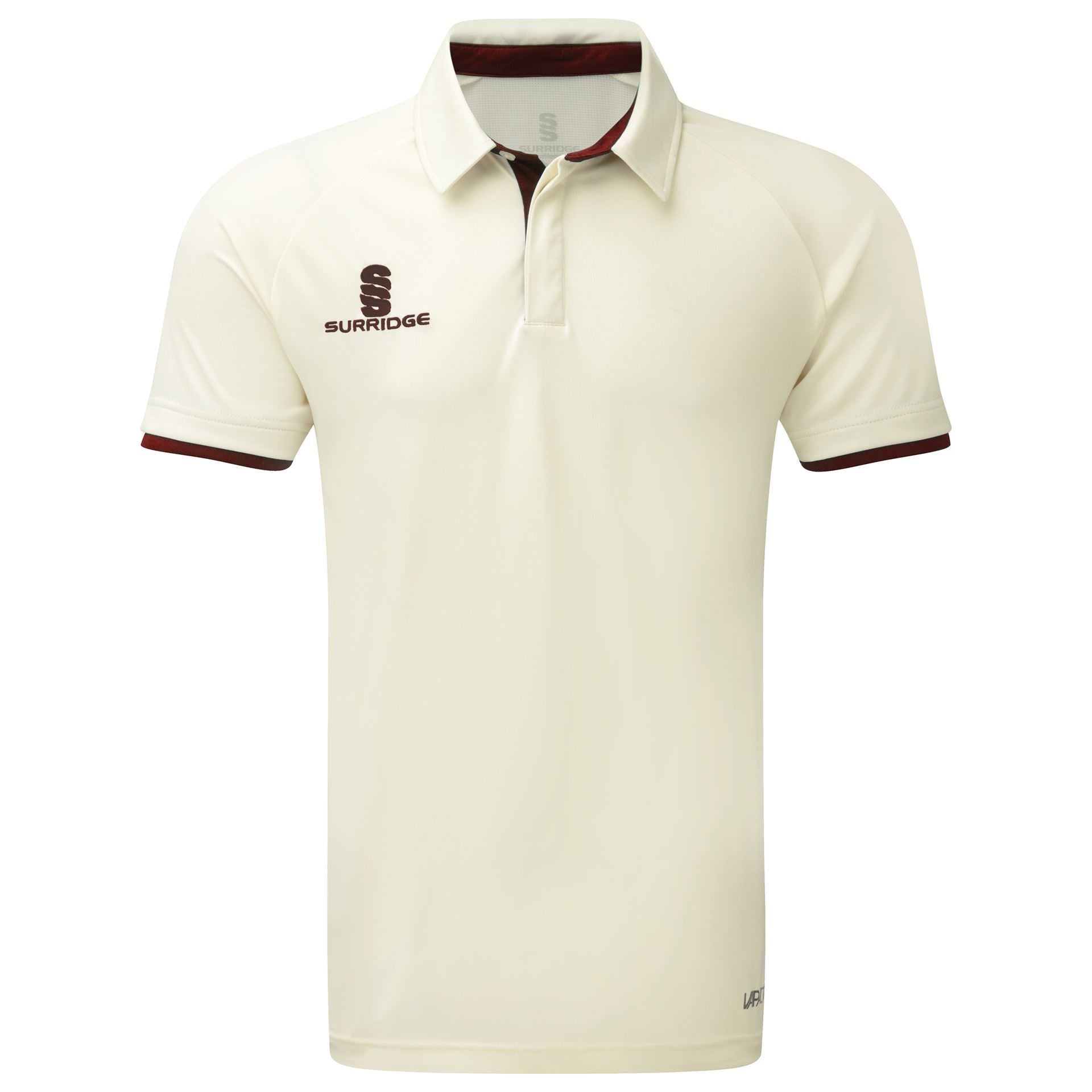 The Surridge Ergo Short Sleeve Cricket shirt for Juniors and Adults is a performance Pro shirt with Polyester/Lycra mesh on back and underarm for ease of movement during play, the shirt having being developed for the professional game. Fabric is lightweight, wicking and breathable.Three Surridge buttons on contrast placket. Embroidered Surridge logo on chest.
